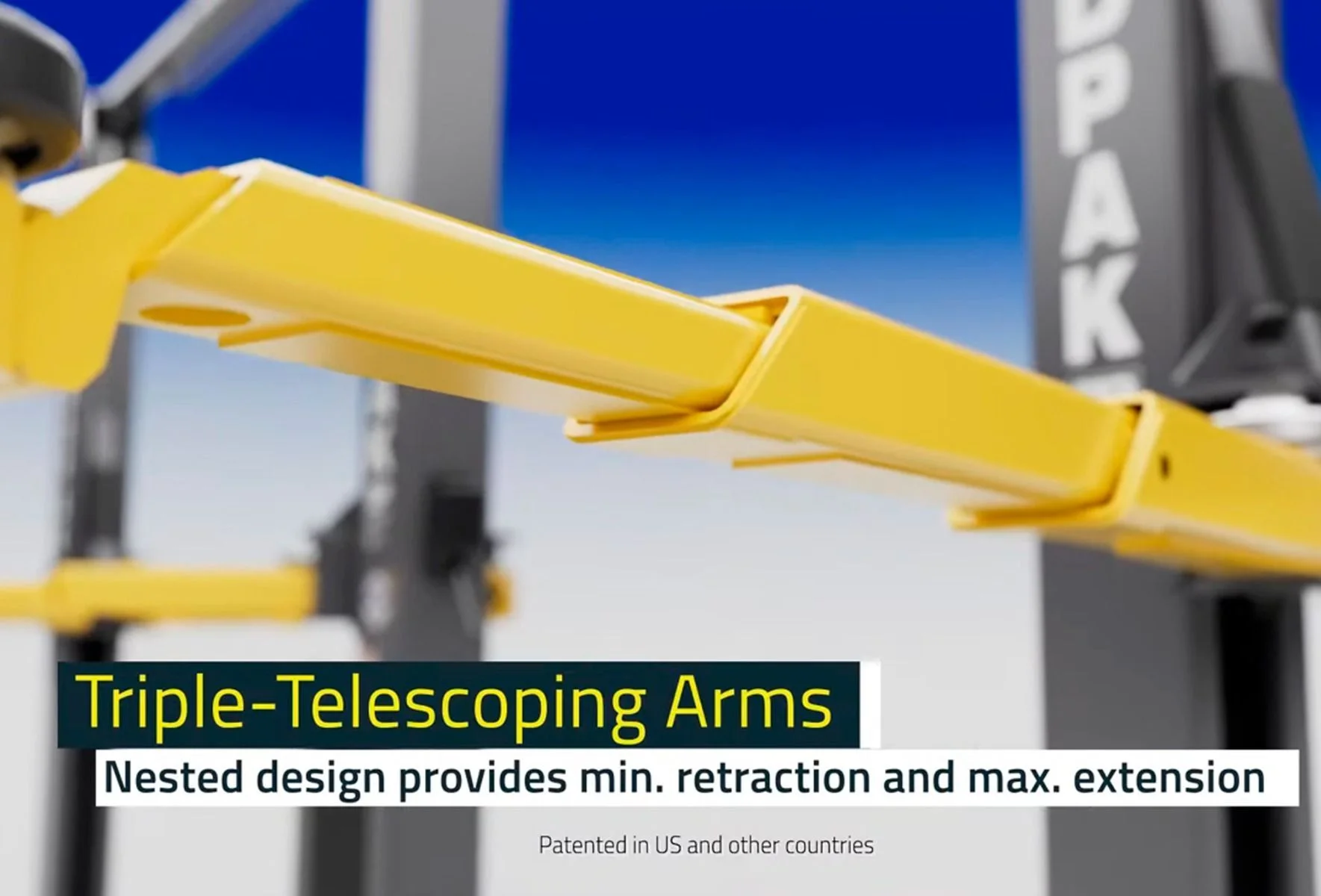 Triple-Telescoping Nested Arms: Patented arms that retract shorter and extend farther than any competitor, ensuring you can reach the lift points on everything from compact electric cars to long-wheelbase trucks.